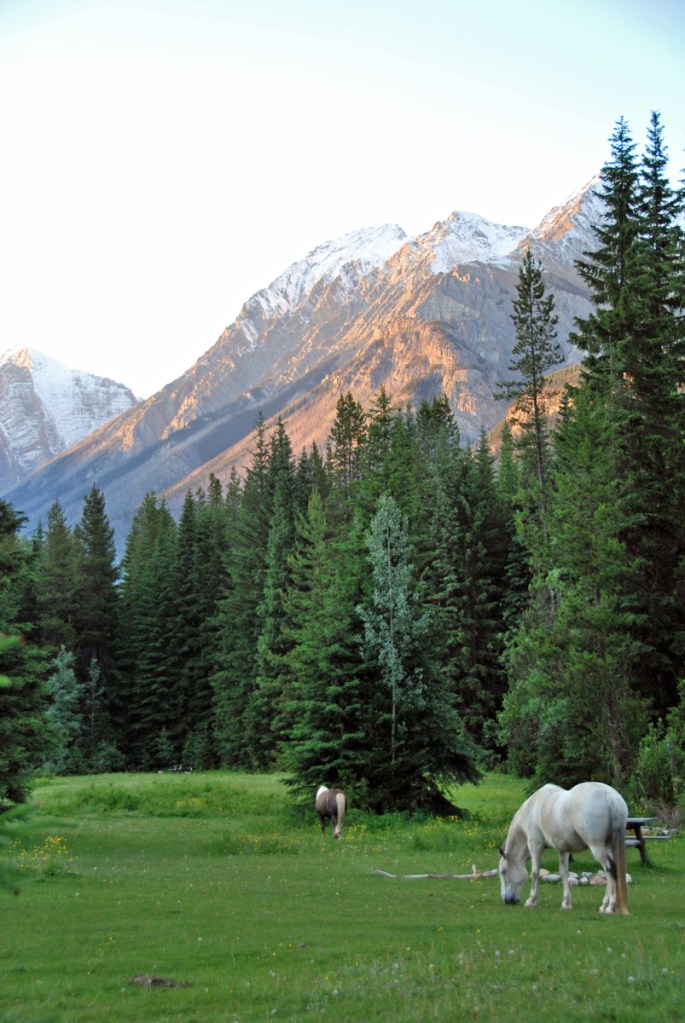 We purchased a pass for Banff and Jasper National Parks and made our way to Two Jack Campground and Lake. An evening drive provided more sheep sightings bringing the total around 40. With the late sunset and our campsite near the lake, it was easy to absorb the area’s beauty. I felt naïve that I didn’t know there were mountains this beautiful in North America. That’s saying a lot considering I’ve lived in Colorado over a decade, visited Alaska three times, and just drove a fairly comprehensive tour of the Western US. I was in my element.