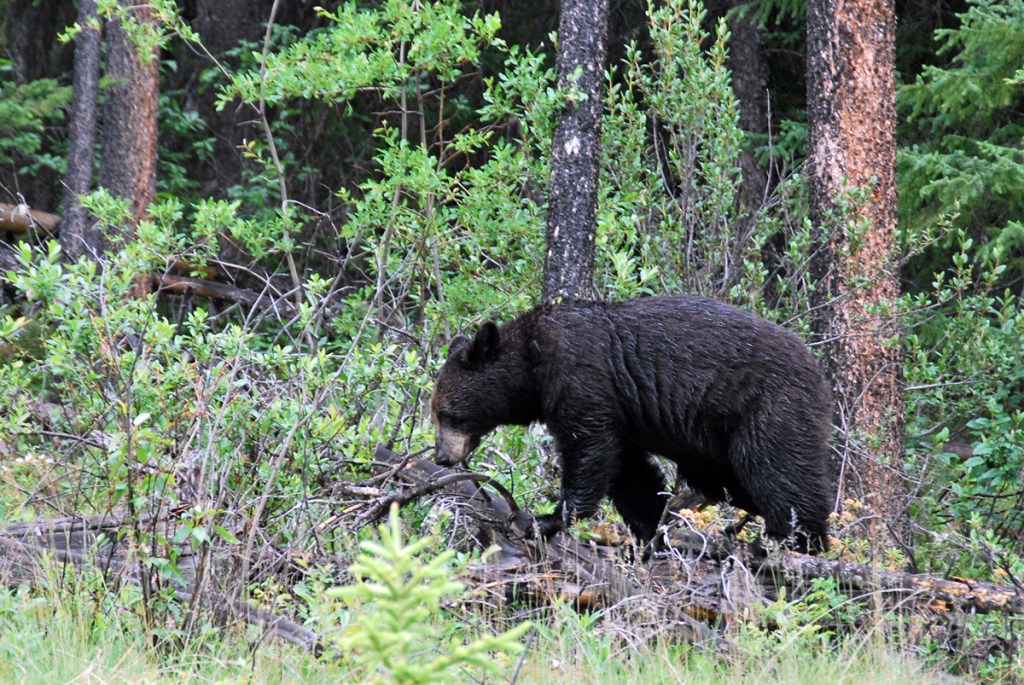 Waking to decent weather after a rainy night, a drive to Maligne Lake seemed like a reasonable plan. Amy had interest in the lake and I learned that the road leading in was known for wildlife. Almost immediately after turning onto the road, we spotted a large buck dear. We saw elk as well. The highlights, though, were the black bears. The first encounter was upsetting as people left cars, were running along the road, and crowding the bear. I chose to leave the area and not be part of the chaos. We were rewarded by another bear that we didn’t have to share with the fools we left behind.