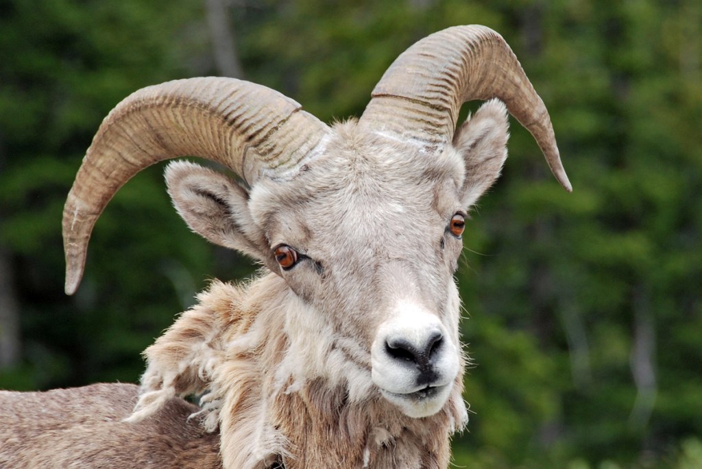 I’ve started buffering others’ must-sees, as we all have different likes and tastes. However, the hotel owner’s advice was spot-on. We made a stop at Lundbreck Falls, checked out the massive Frank Slide where 82 tons of Turtle Mountain’s face gave way covering the town of Frank in 1903, and ended up driving the suggested alternate route toward Banff. The latter proved to be one of the most beautiful drives during the North American portion of our travels and really showcased the Canadian Rockies. Glaciated mountains towered over the highway and big horn sheep were plentiful along the way.