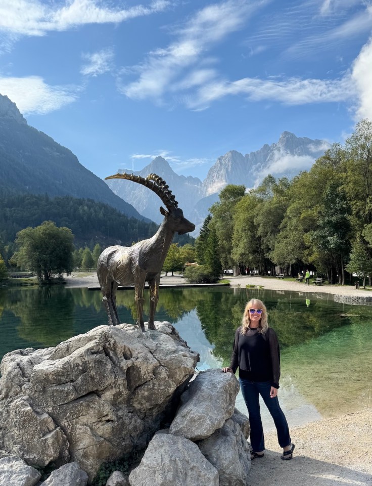 Amy and Jon: After Zell am See, Jon drove the Austrian autobahn toward Slovenia, a country I had been eager to visit. Our first stop was Landskron Castle near Villach, Austria. We enjoyed lunch surrounded by a surprising number of Harley Davidson motorcycles. This area seems to be popular for bike tours and there was a Harley rally going on at the castle. The castle offered lovely views, and we spotted large eagles soaring overhead during our visit.